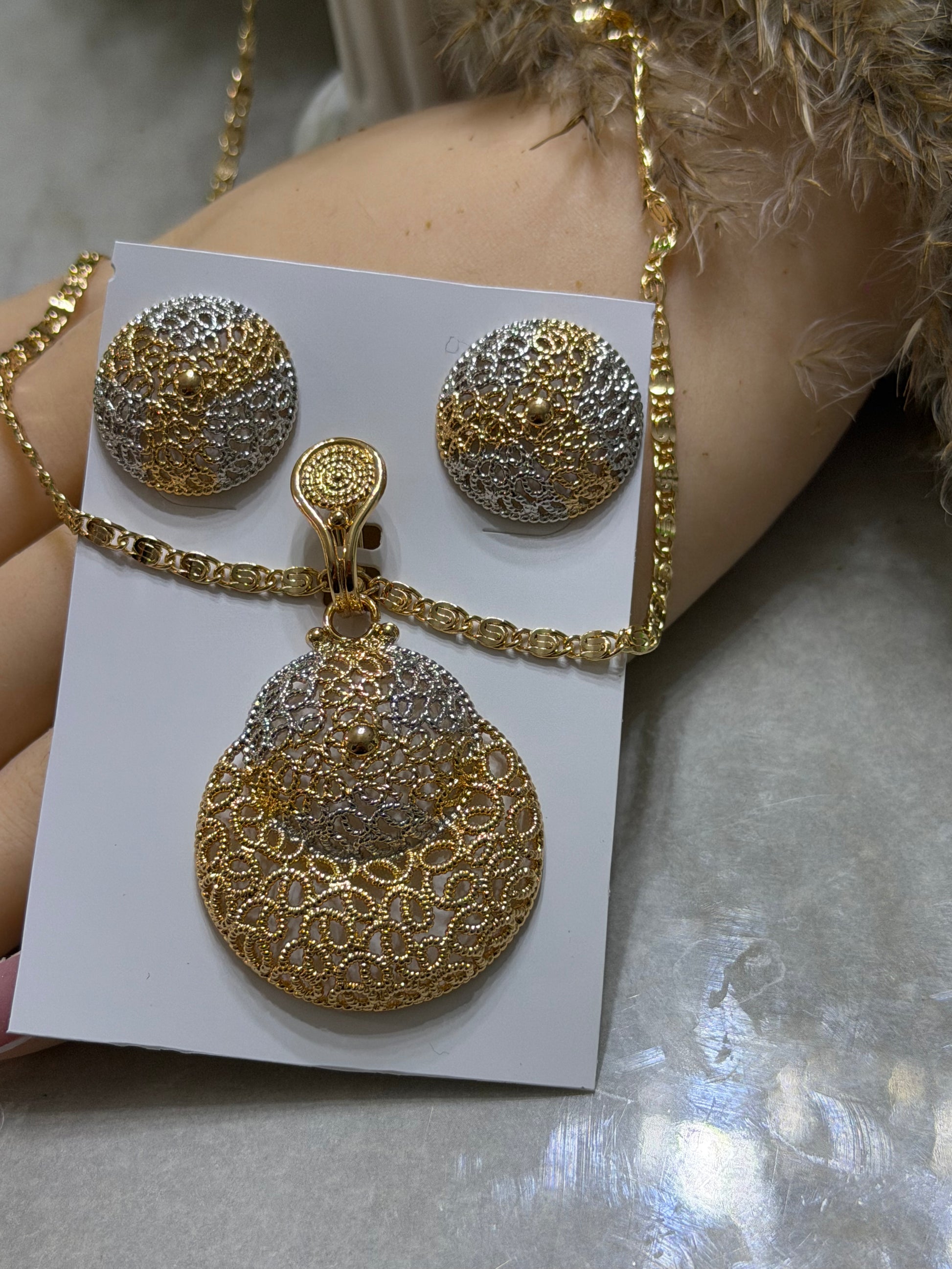 Set de aretes, cadena de 22” con dije.